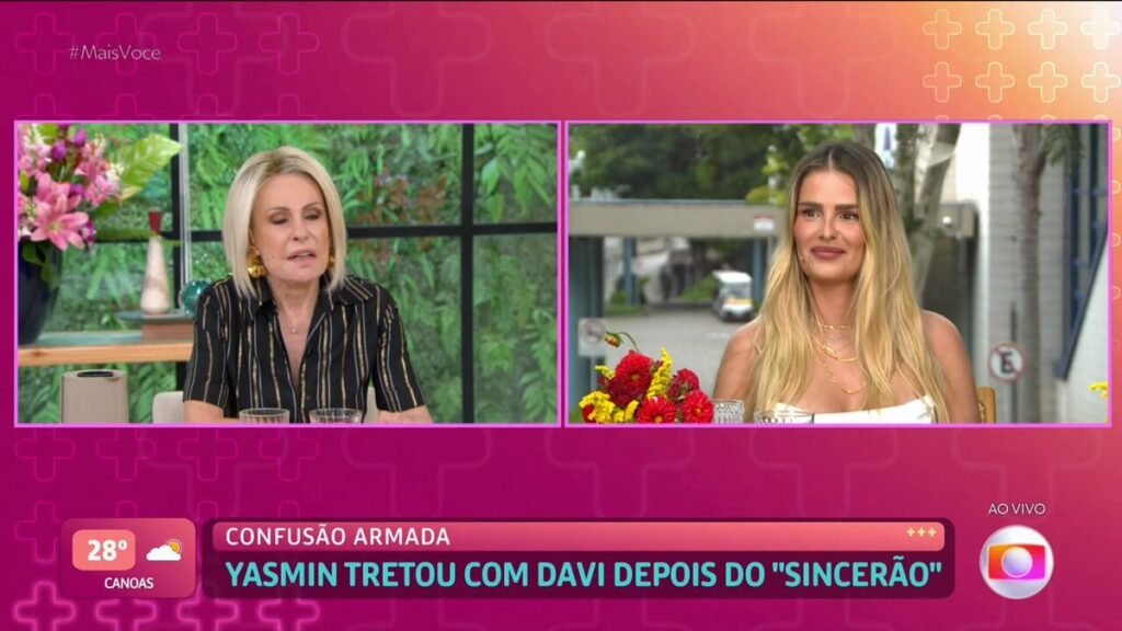“A Ana Maria Braga odeia o Davi né? percebam a diferença de uma artista realmente famosa que não precisa forçar por likes e agradar uma certa bolha [sic]”, postou uma internauta. “Estou chocado que a Ana Maria Braga está fazendo a entrevista com a Yasmin completamente tendenciosa contra o Davi”, disse outro.
