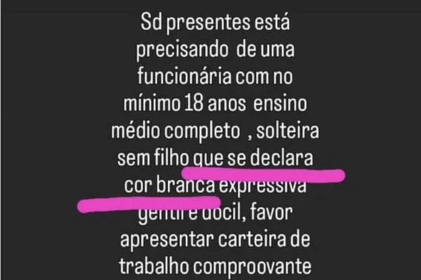 Caetité, Bahia, se viu envolvida em um debate acalorado sobre racismo e misoginia após a publicação de um anúncio de emprego por uma loja local, a SD Presentes. O anúncio especificava a necessidade de uma funcionária solteira, sem filhos, de cor branca e...