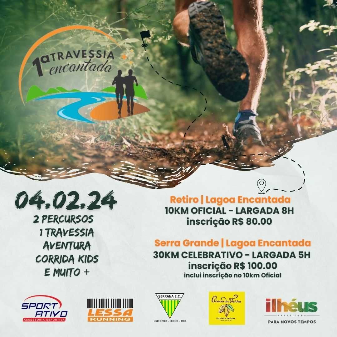 O percurso de 10km terá sua largada às 8h, no Retiro, com destino à Lagoa Encantada Neste domingo (4), acontecerá a 1ª Travessia Encantada, percurso de 10km que terá sua largada às 8h, no Retiro, com destino à Lagoa Encantada. A prova liga...