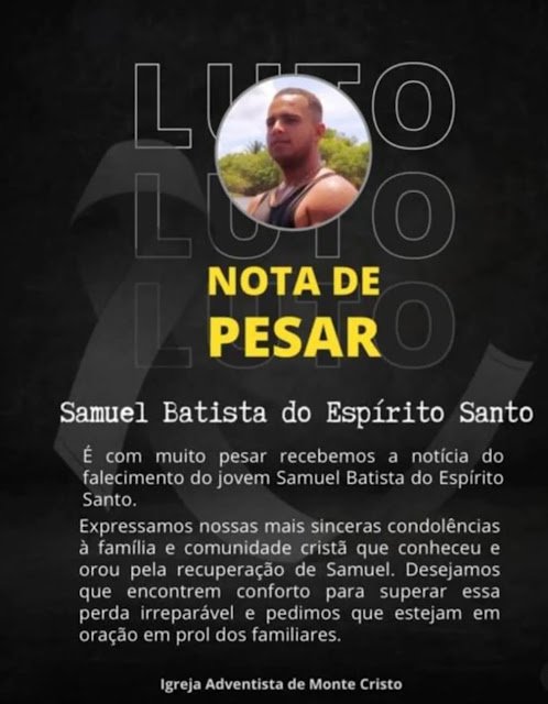 Infelizmente, nesta manhã, Samuel não resistiu mais. Familiares divulgaram uma Nota de Pesar nas redes sociais, expressando gratidão pelas orações em apoio ao jovem.