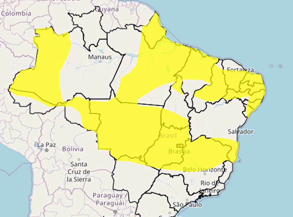 O Inmet emitiu dois alertas, um de “Perigo” e outro de “Perigo Potencial” para as onda de calor que também afetas as regiões Sul, Centro-Oeste e Sudeste. O fenômeno se estabelece quando as temperaturas permanecem 5 °C acima da média durante, pelo menos, 5 dias seguidos. Os avisos, nas cores laranja e amarelo, tem duração prevista até às 18h de quinta e sexta-feira. O calor excessivo pode apresentar riscos à saúde.
